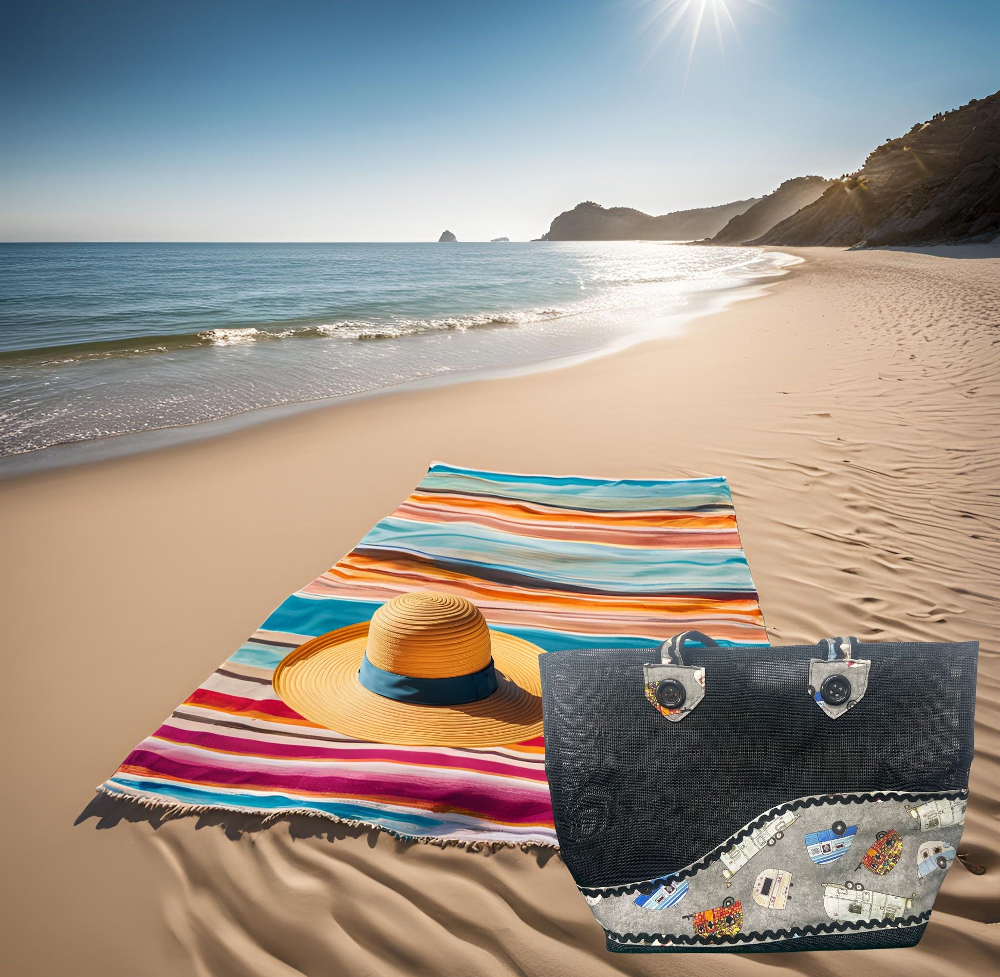 A roomy, durable bag with a strong base and sturdy mesh fabric—ideal for beach days! Perfect for tossing in wet towels, sandy bathers, and all your seaside essentials.