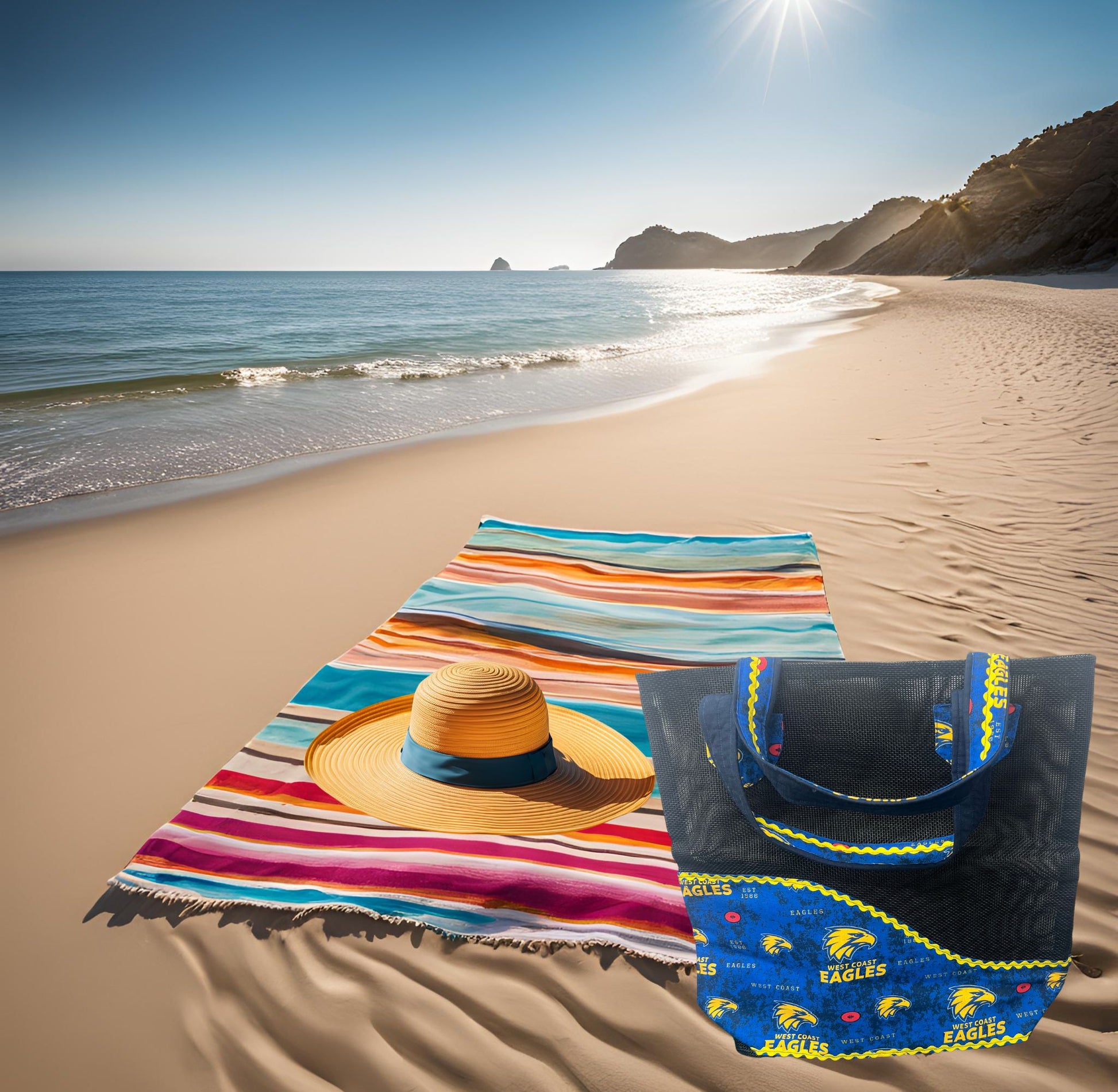 A roomy, durable bag with a strong base and sturdy mesh fabric—ideal for beach days! Perfect for tossing in wet towels, sandy bathers, and all your seaside essentials.